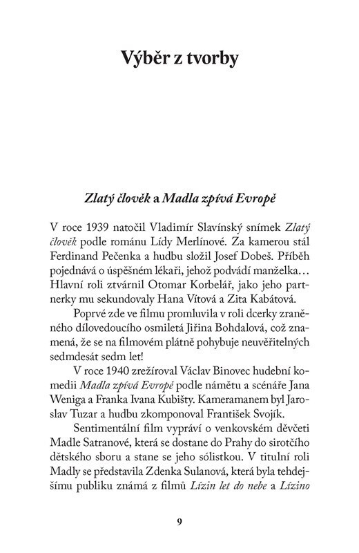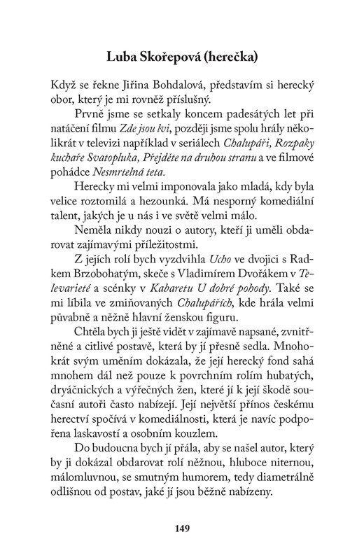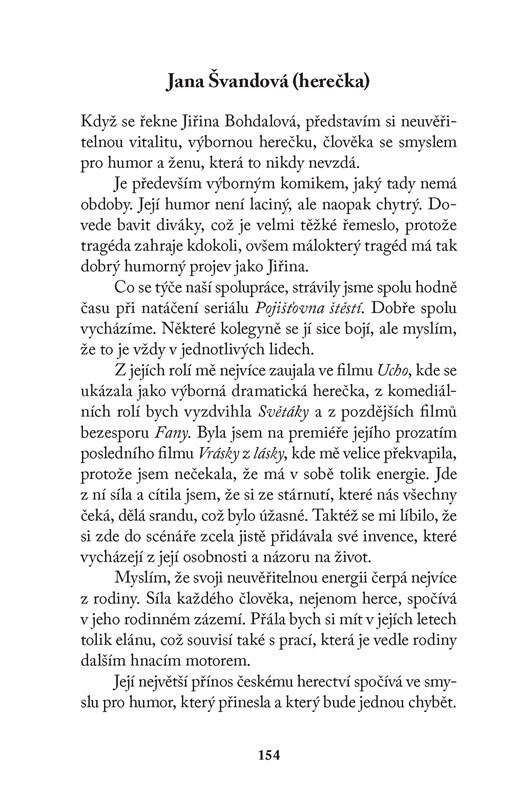 O Jiřině Bohdalové už bylo popsáno nespočet listů papíru, ale knížka, kterou právě držíte v ruce, je výjimečná. Kromě výběru ze známých a hlavně polozapomenutých filmů i televizních seriálů, ve kterých Jiřina Bohdalová účinkovala, přináší rozhovor s touto slavnou herečkou a zejména pak vzpomínky...