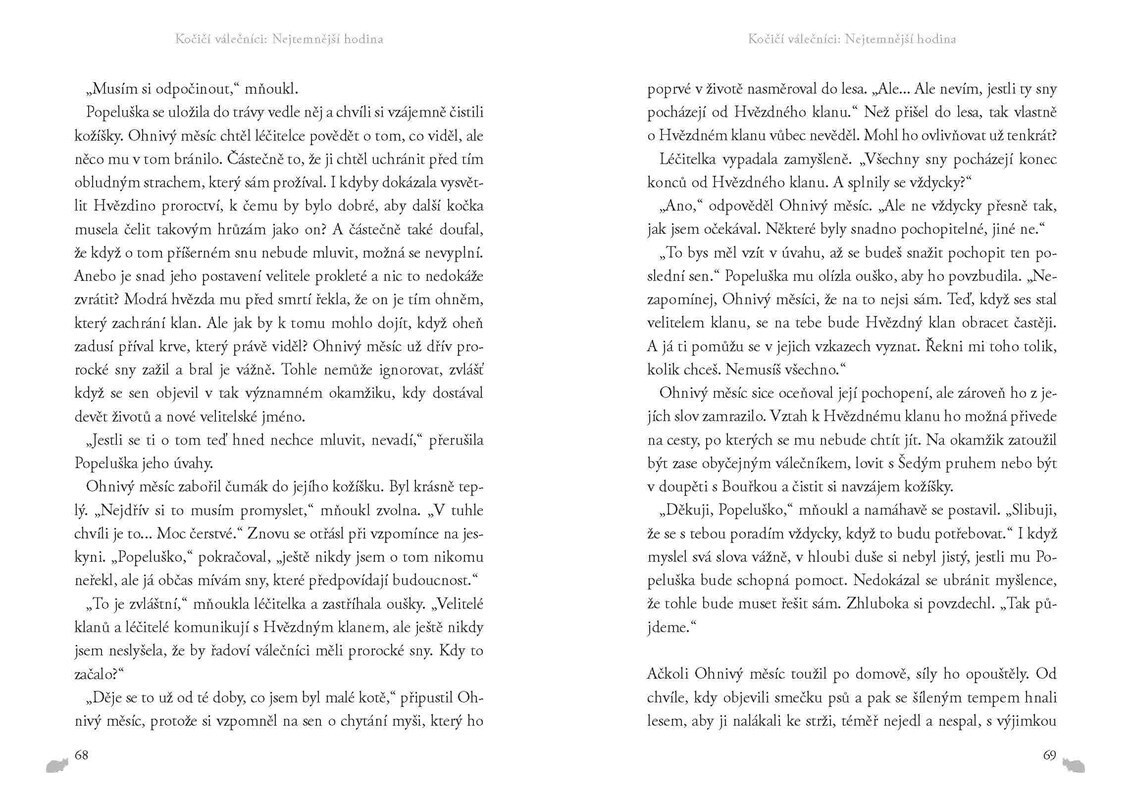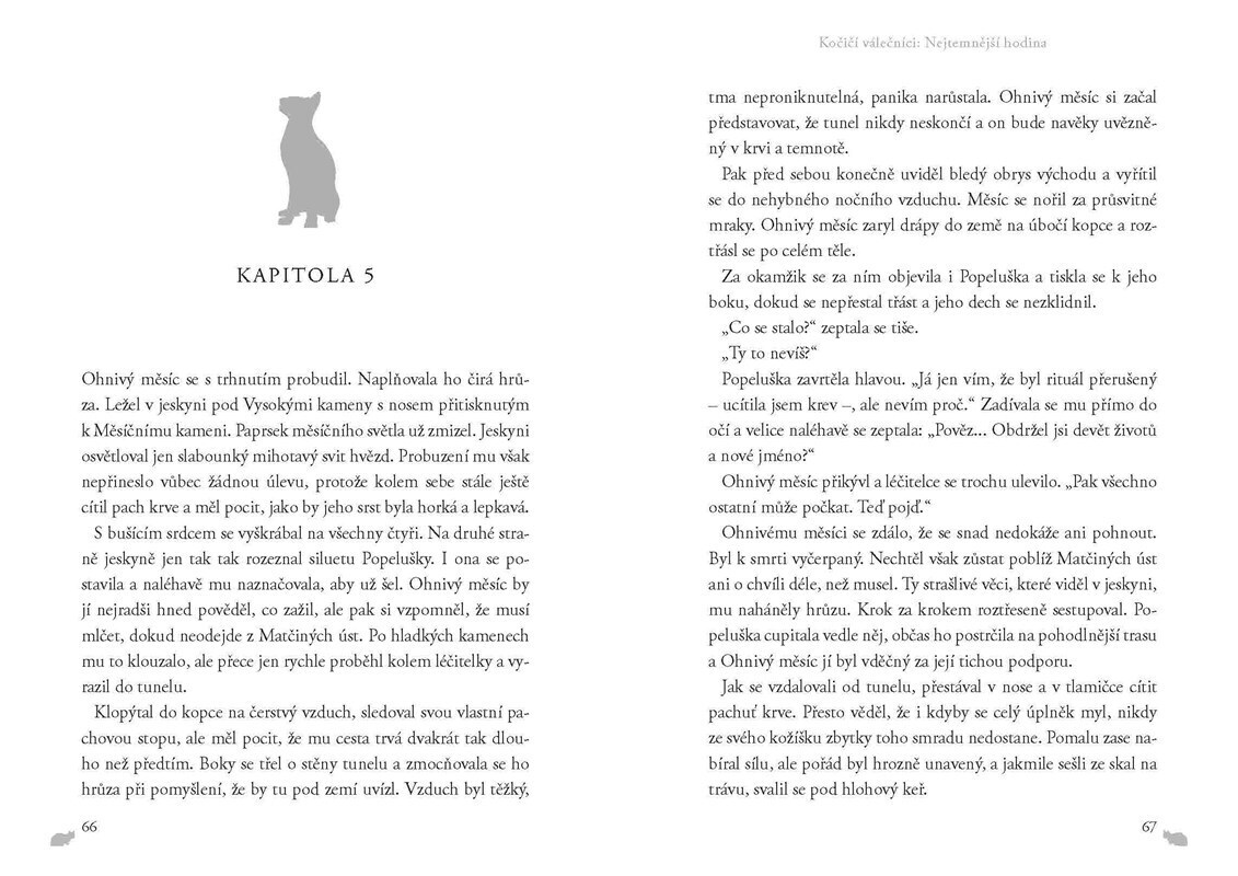 Po tragické smrti Modré Hvězdy se vůdcem Hromového klanu stává Ohnivous. Záhy je donucen postavit se čelem svému osudu, když Dráp se svými zlověstnými úmysly přivede celý les na pokraj hrozivé smrtící bitvy. Tajemná proroctví promlouvají a vstávají skuteční hrdinové…