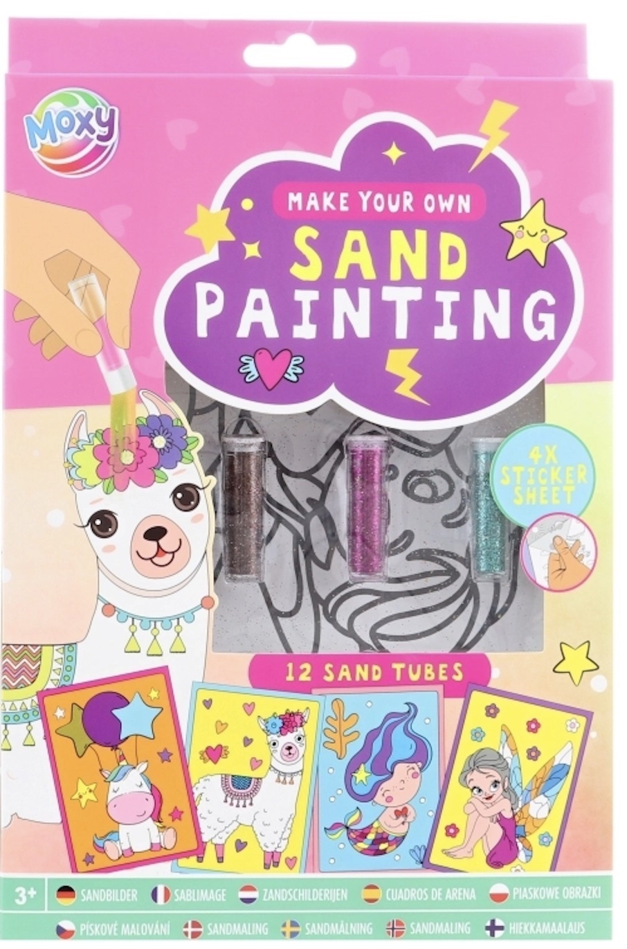 Kreativní sada obsahuje 4 listy s omalovánkami a 12 tubiček s barevnými třpytkami. Rozměry balení cca 17x26x2,5 cm. Věk 3+