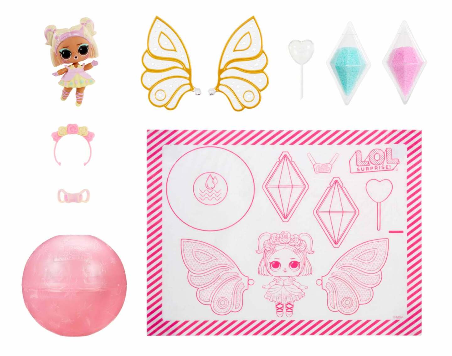 Pomůžeš L.O.L. Surprise! panenkám proměnit se v malé víly? Panenka potřebuje vyrobit křídla v několika jednoduchých krocích. Polož křídla na rovnou podložku.Nasypej barevný vílí prach do křídel (použij svou představivost a kreativitu).Pipetou z balení nakapej vodu do křídel.Počkej, až křídla...