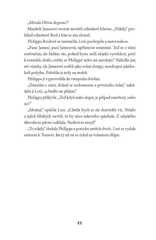 Detektiv Lexi Bennettová se prochází ulicemi Canterbury, když zaslechne křik. Pod jednou z městských věží najde ležet tělo dospívající dívky. Skočila, spadla, nebo ji někdo strčil? Oliviini zoufalí rodiče tvrdí, že jejich dcera, talentovaná hudebnice, neměla pro sebevraždu důvod – a to samé...