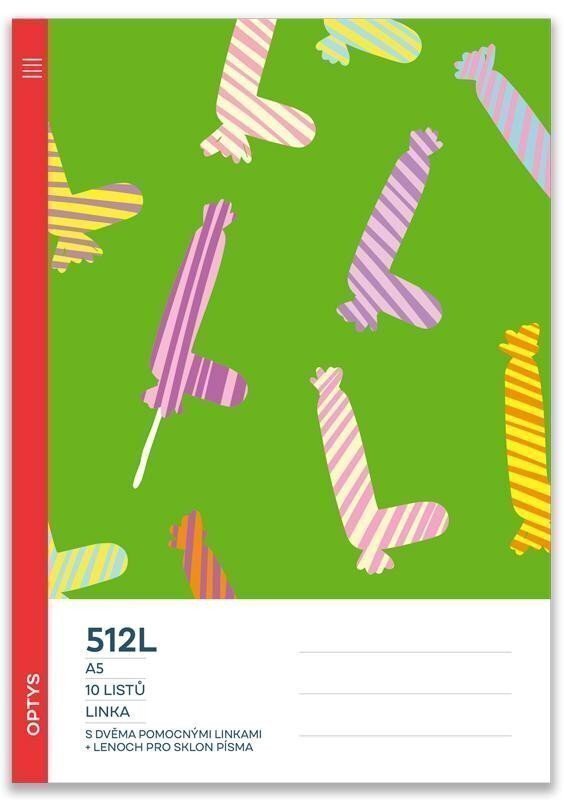 písmen. Sešit o 10 listech má motiv bonbónů ve tvaru L. Motiv dětem pomáhá rozlišit, jestli je vhodný do matematiky, psaní, prvouky nebo jiného předmětu. A učitelům tak usnadňuje komunikaci se žáky.Tento školní sešit OPTYS, stejně jako celou řadu, jsme vyvinuli ve spolupráci