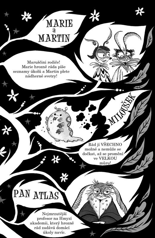 Malá můrka Maruška nastupuje na Hmyzí akademii! Nemůže se dočkat, až se dozví vše o velkém světě hmyzíků, a zejména o tajemstvích měsíční magie. Pak ale zjistí, že hodiny o Měsíci jsou zrušeny a ona by chtěla vědět proč! Maruška a její noví kamarádi se vydávají na senzační dobrodružství, až do...