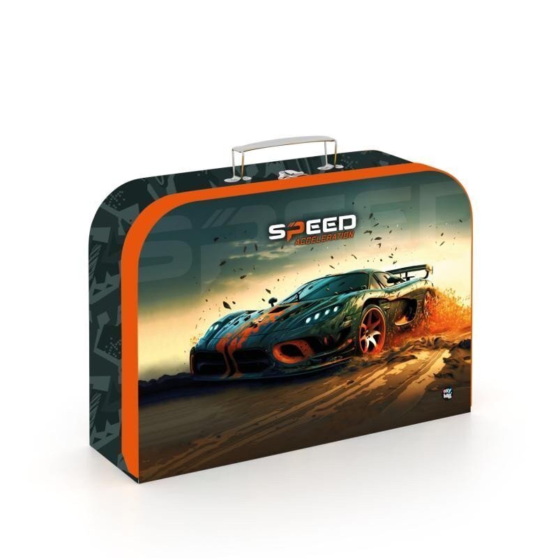 Lamino kufřík na výtvarnou výchovu. Do kufříku se vejde formát A4. Materiál: papír, lepenka, kovový zámeček, kovové nýty....