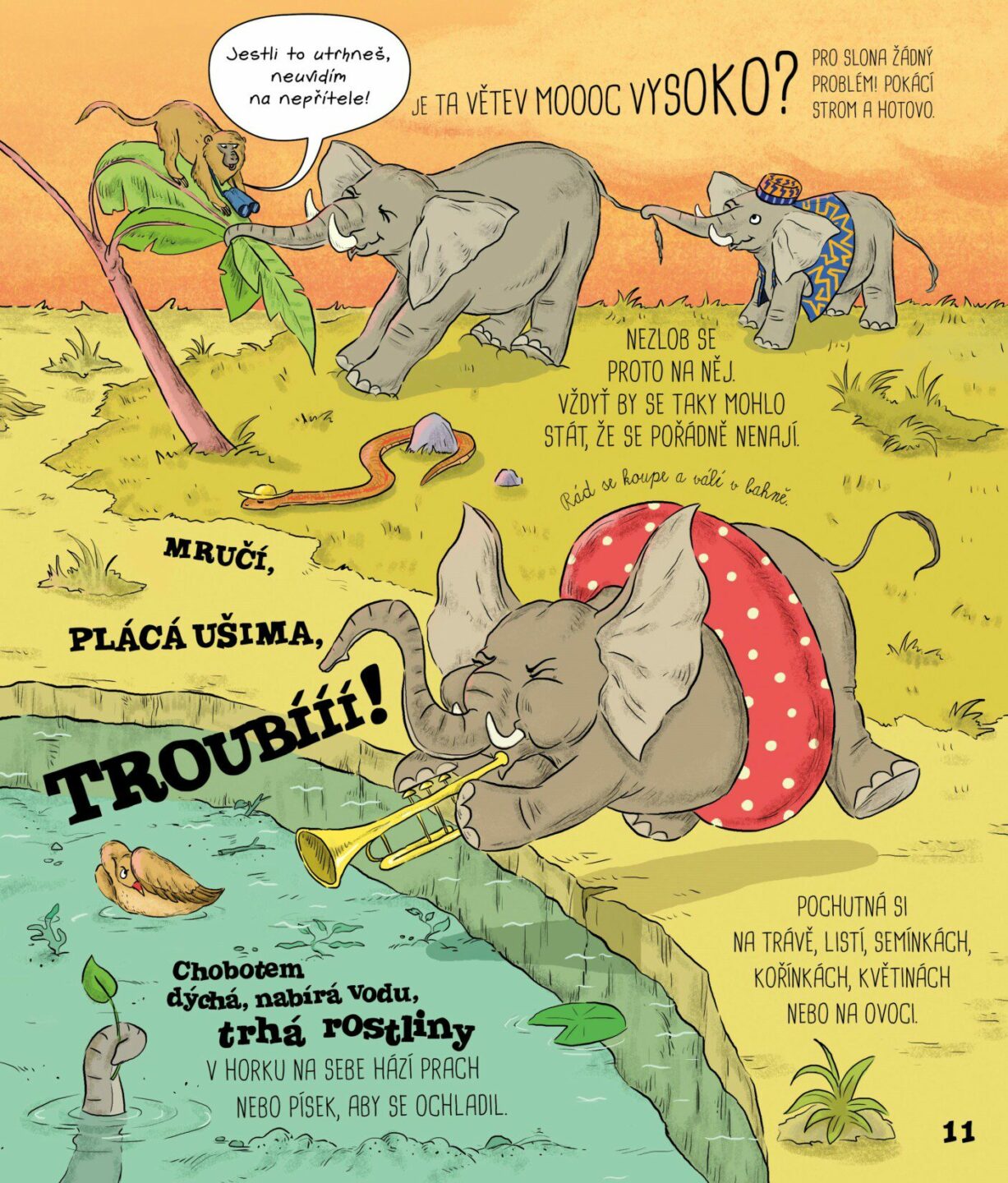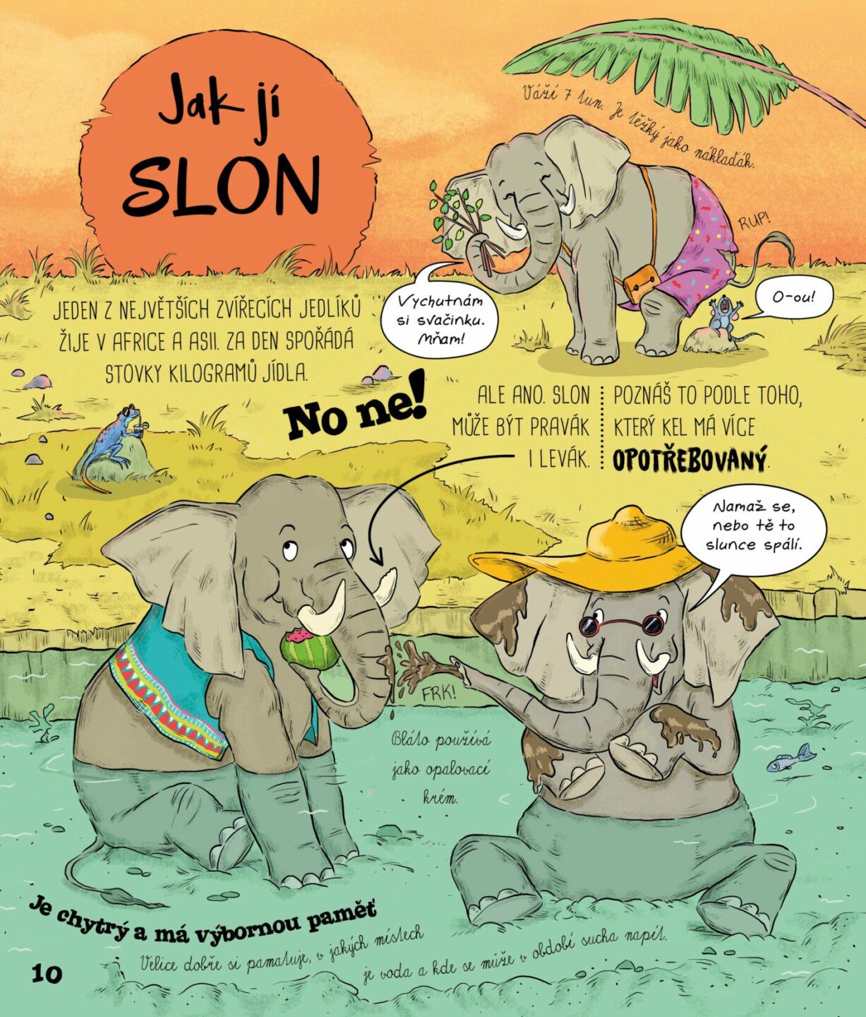 Vypadá jako něco mezi bobrem, kachnou a vydrou, a navíc nemá žaludek. Chudák ptakopysk! Copak asi žere? Určitě toho nespořádá tolik jako slon, který může sežrat za jediný den až tři sta kilogramů potravy. Jen pro tvou představu, tolik váží třeba tři čerstvě narozená slůňata. Svět zvířecích...