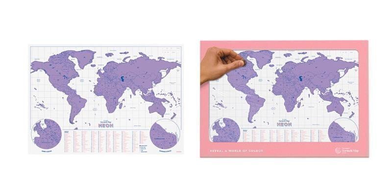 Stírací mapa světa Neon Purple