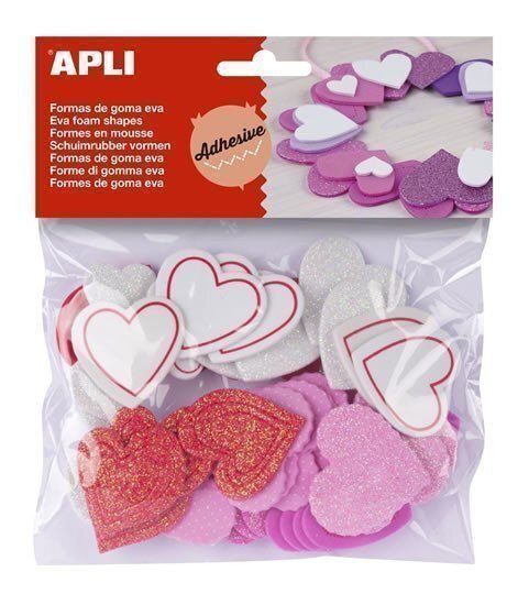 APLI pěnovka tvary - srdce se třpytkami samolepicí, mix velikostí, barev 52 ks