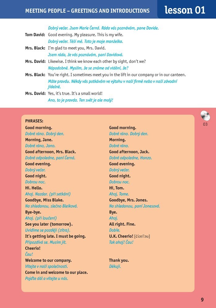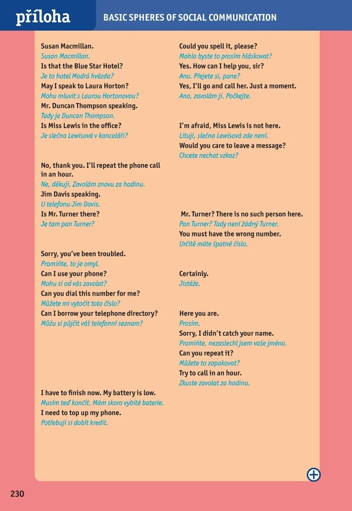 Učebnice je určena středně pokročilým studentům, pro konverzační kurzy i pro samouky. Obsahuje řadu slovních obratů a frází zaměřených na cestovní ruch, ale i další oblasti života. Na začátku lekce najdete tématické rozhovory s českým překladem. Následuje souhrn frází a slovíček a vysvětlení...