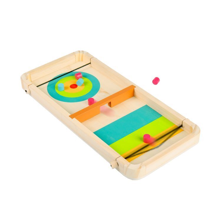 Dřevěné stolní hry od Albi je série 3 jednoduchých zábavných her pro 2 hráče. Přebíjená je svižná hra, ve které se snažíte dostat co nejrychleji všechny žetony na soupeřovu stranu. Hra Přebíjená obsahuje: herní desku, 2 gumičky, středový díl a 10 puků.