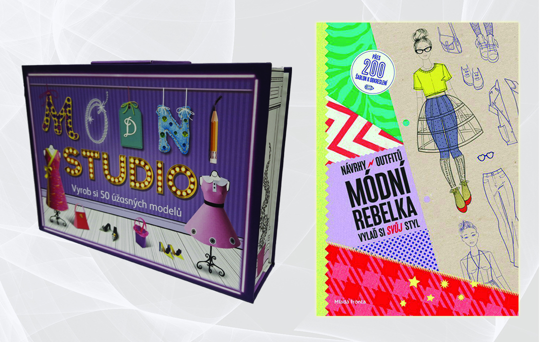 s 200 šablonami na nejrůznější části oděvů – od triček, blůz, svetrů, přes sukně, kalhoty, šaty až po boty, ponožky, účesy, šály a doplňky. Z nich se dá poskládat nekonečné množství originálních outfitů. Stačí jen šablonu vložit pod průsvitný list náčrtníku,