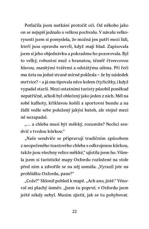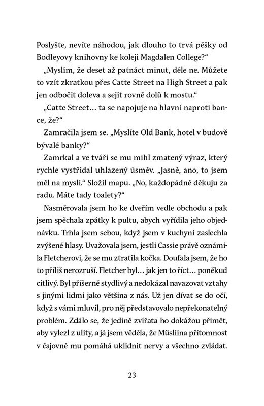 Gemma už má po krk kancelářské práce, a tak si v Oxfordu otevře malebnou čajovnu. Když se ale v podniku najde tělo zavražděného amerického turisty, ocitá se mladá žena uprostřed záhady zahrnující dávno pohřbená tajemství oxfordské minulosti. Rozjíždí se vyšetřování, které vede detektiv Devlin...