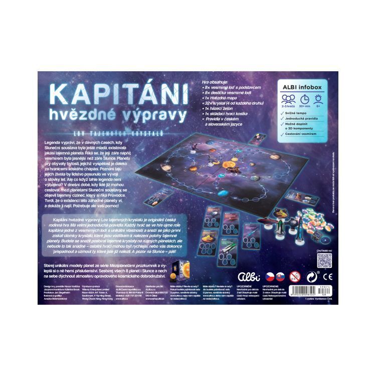 Originální česká rodinná hra s velmi jednoduchými pravidly. Staňte se kapitánem vesmírné lodi, nasbírejte všechny krystaly a vyhrajte závod. Hra se dá obohatit herními komponenty ze série Meziplanetární průzkumník. Hra Kapitáni hvězdné výpravy obsahuje: 8 vesmírných lodí s podstavcem, 8 destiček...