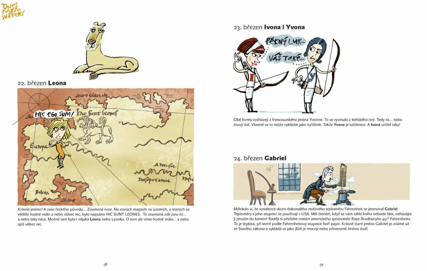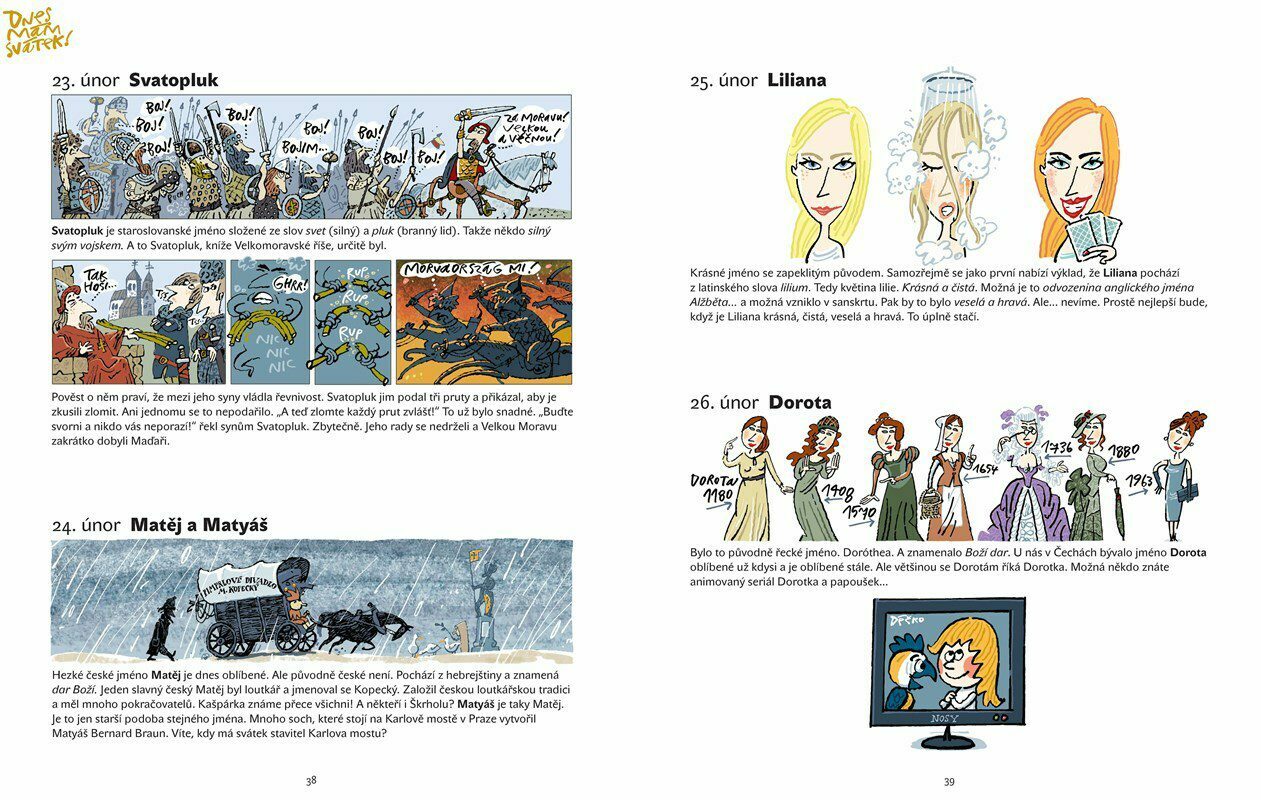 Kdo má dnes svátek? No přece já! Hravá obrázková encyklopedie, která vám prozradí leccos o původu a významu jmen v kalendáři. Věděli jste, že Ctirad znamená „ten čestný“? A že oblíbené jméno Jiří je řeckého původu a že tohle jméno v různých podobách nosily celé zástupy státníků, vědců a umělců?...