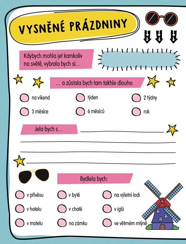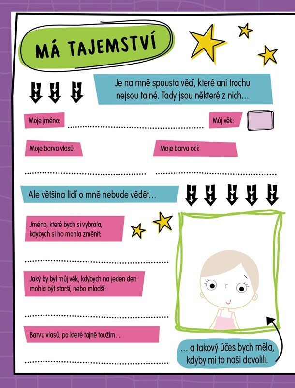 Zapisuješ si ráda své zážitky, plány, přání a sny? Chceš poznat sama sebe a královsky se u toho bavit? Tak odpovídej na otázky, vyplňuj testíky a vytvoř si deník, který udrží všechna tvoje tajemství! A pokud nechceš, aby tvé zápisky někdo četl, prostě si deník zazipuj!