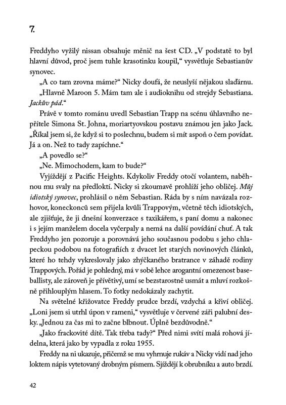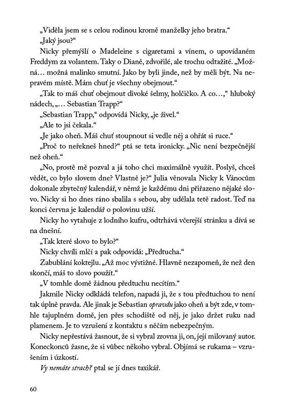 „Do tří měsíců budu mrtvý. Přijeďte, odvyprávím vám svůj příběh.“ Samotářský spisovatel detektivních románů Sebastian Trapp do svého domu v San Francisku pozve Nicky Hunterovou, se kterou si dlouhá léta dopisuje. Expertka na krimi žánr postupně začne rozplétat případ, který je mrazivější než...