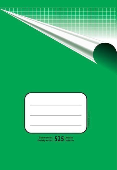 Klasický školní sešit číslo 525, formát A5, 20 listů, čtverečkovaný. br brŠkolní sešity mají pevnou papírovou obálku v klasickém retro designu. Na přední obálce je několikařádkový prostor pro nadepsání jména a příjmení, třídy nebo školního předmětu. br