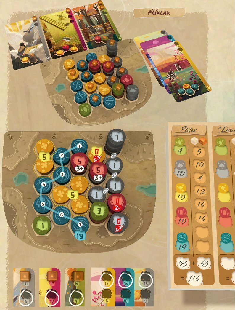 žetonů 70 kostek zvířat 32 karet zvířat 10 karet duchů přírody 1 bodovací bloček 1 česká a slovenská pravidla