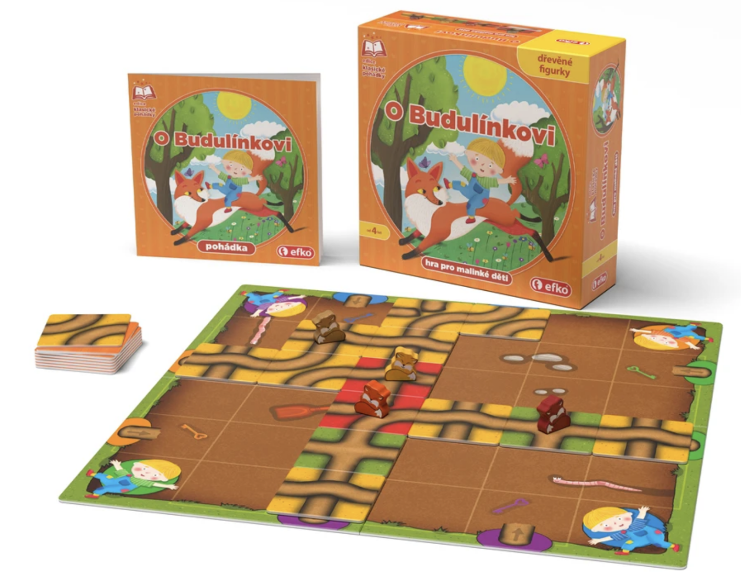 Ponořte se spolu s děti do oblíbené pohádky O Budulínkovi. Stanete se jednou z lištiček, která se snaží jako první dostat k Budulínkovi. Za pomoci kartiček k němu musíte „vyhrabat“ noru. Ale pozor, kartičky na sebe musí navazovat. Hra je