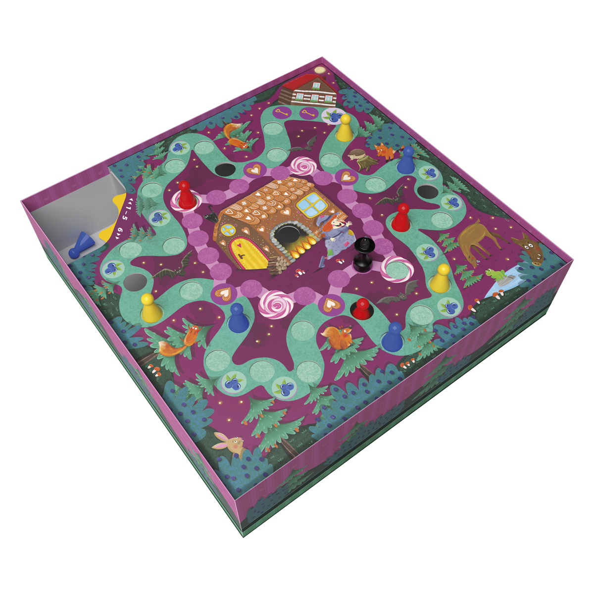 se ale Perníkové chaloupce, kde bydlí zlá Ježibaba. Ta v lese nastražila léčky a na otočném 3D herním plánu chytá děti do pastí. Součástí balení je také knížečka s pohádkou O perníkové chaloupce, která skvěle navodí pohádkovou atmosféru.