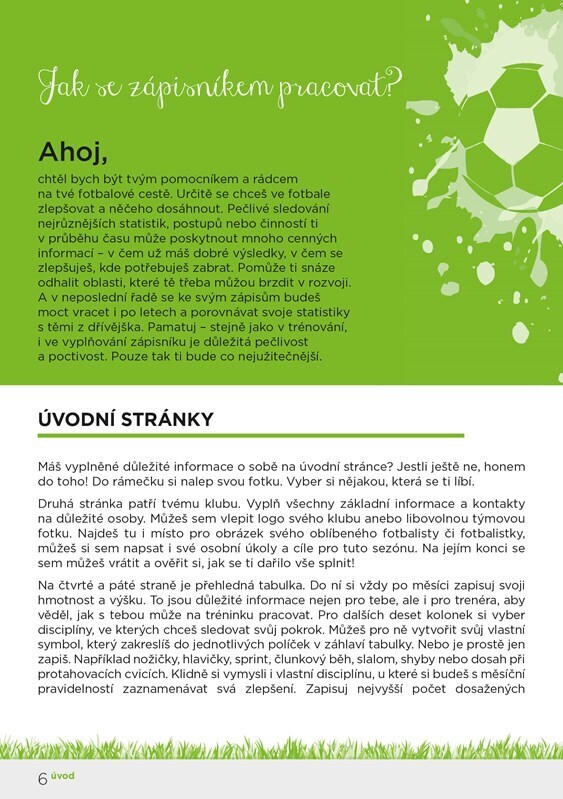 Trénuj jako profík! Fotbalový kouč Stanislav Bejda, mistr světa v malém fotbalu z roku 2017, připravil ve spolupráci s dalšími odborníky zápisník, který umožní každému fotbalistovi a každé fotbalistce sledovat svůj pokrok a zlepšovat se ve fotbalových dovednostech: Zápisník je strukturován tak,...