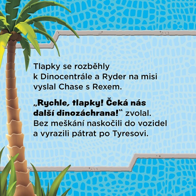 Tlapky připravují báječnou narozeninovou oslavu pro malého tyranosaura Tyrese, jenže když ho vyděsí prasklý balonek, dá se na útěk! Přidejte se k Tlapkové patrole na jejich neohrožené záchraně a pomozte jim vystopovat dinosauří mládě v džungli. Podaří se hrdinům najít ho včas, aby nezmeškal...