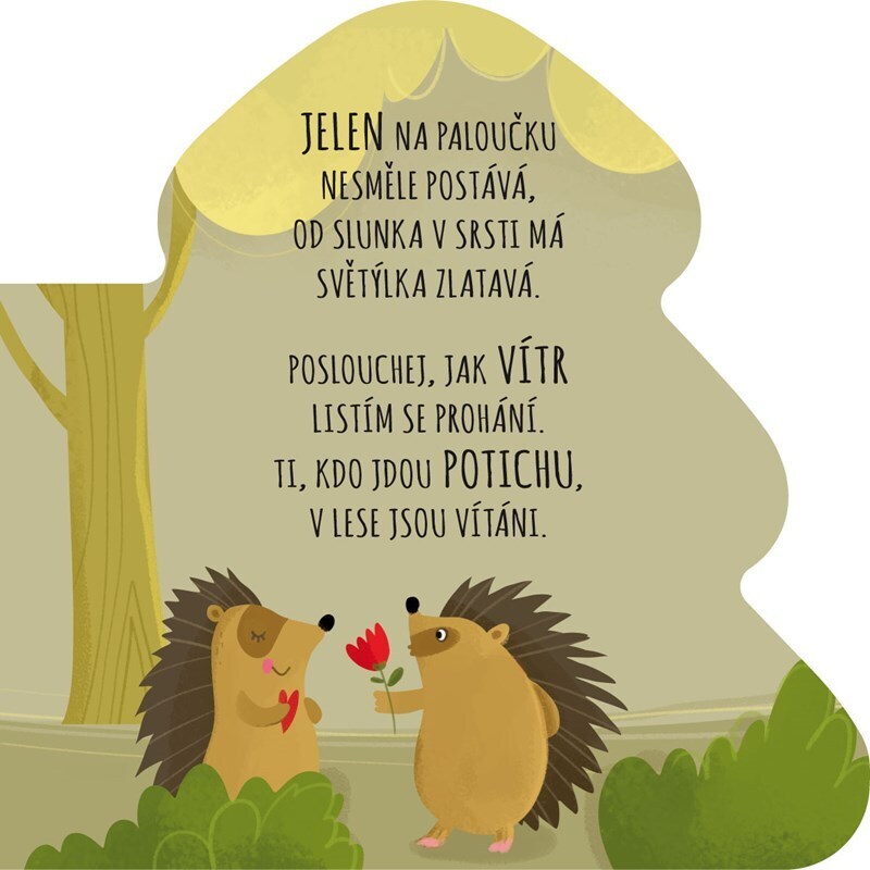Knížka tvarem přizpůsobená dětským ručkám! Díky tvarovaným stránkám a veršíkům v této milé knížce se nejmenší děti seznámí s lesními zvířátky. Při zábavě s knihou si rozšíří slovní zásobu, rozvinou představivost a procvičí jemnou motoriku.