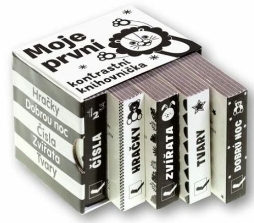 <p>Objevte vysoce kontrastní černobílá leporela v této praktické knihovničce. Každé leporelo obsahuje výrazné obrázky čísel, zvířat, tvarů či předmětů, které nejmenším dětem napomáhají s přirozeným vývojem a raným učením. Užijte si s dětmi zábavu při prohlížení a objevování okolního světa!...