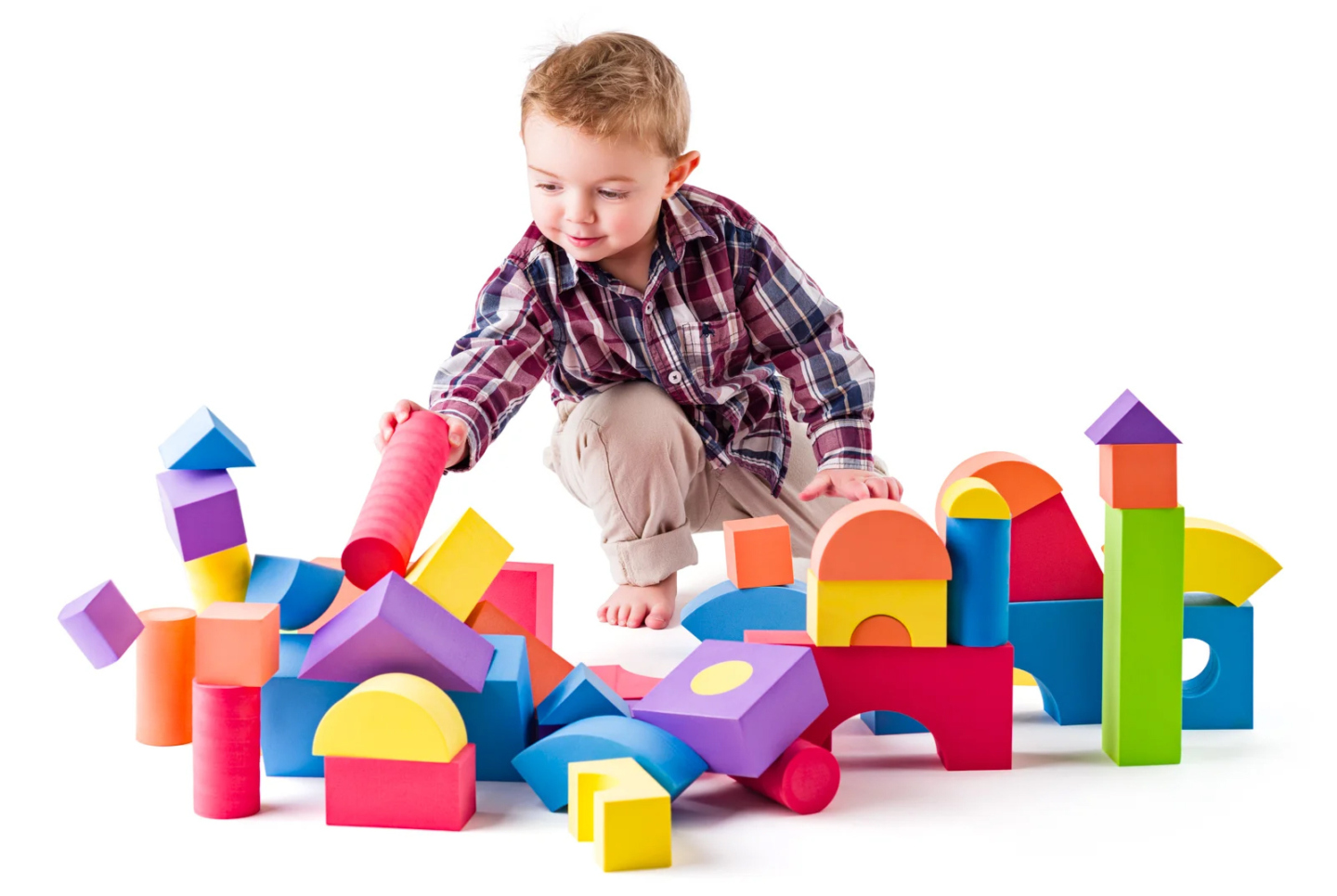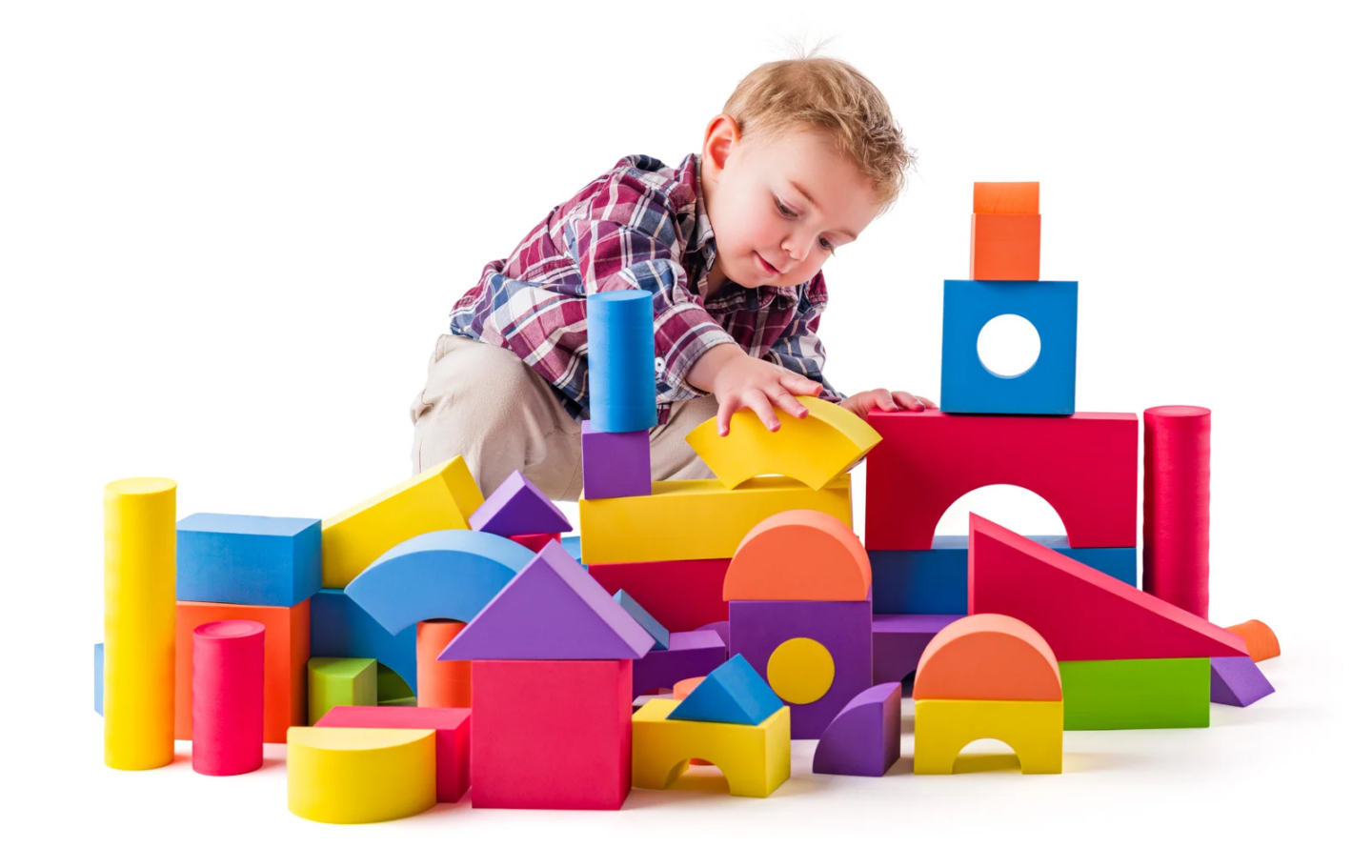 Velké a stabilní kostky z měkkého pěnového materiálu jsou ideální pro snadné a bezpečné stavění. Děti je snadno uchopí a při pádu si neublíží – nemají ostré hrany, takže jsou naprosto bezpečné. Sada obsahuje 54 kostek v pestrých barvách a různých tvarech – válce, kvádry, kostky i půlkruhy....