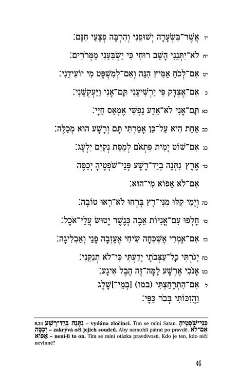 Biblická kniha Job ve dvojjazyčné verzi s Rašiho komentářem a v překladu rabína Karola Efraima Sidona. Znepokojující výpověď nespravedlivě trpícího Joba o původu utrpení.