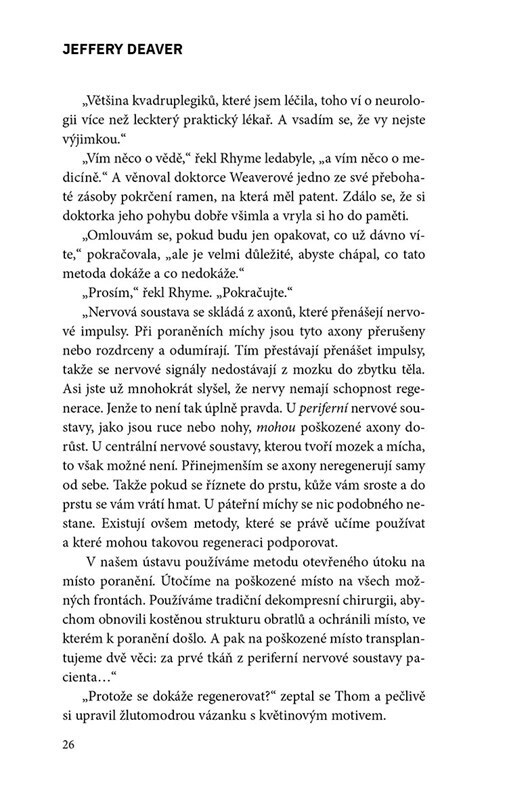 Lincoln Rhyme přijíždí s Amélií Sachsovou do Severní Karolíny, kde má podstoupit riskantní operaci, která by mu mohla navrátit hybnost. S žádostí o pomoc se na něj obrátí šerif nedalekého městečka, kde byl zavražděn místní chlapec a uneseny dvě dívky. Rhyme s Amélií souhlasí. Proti nim však...