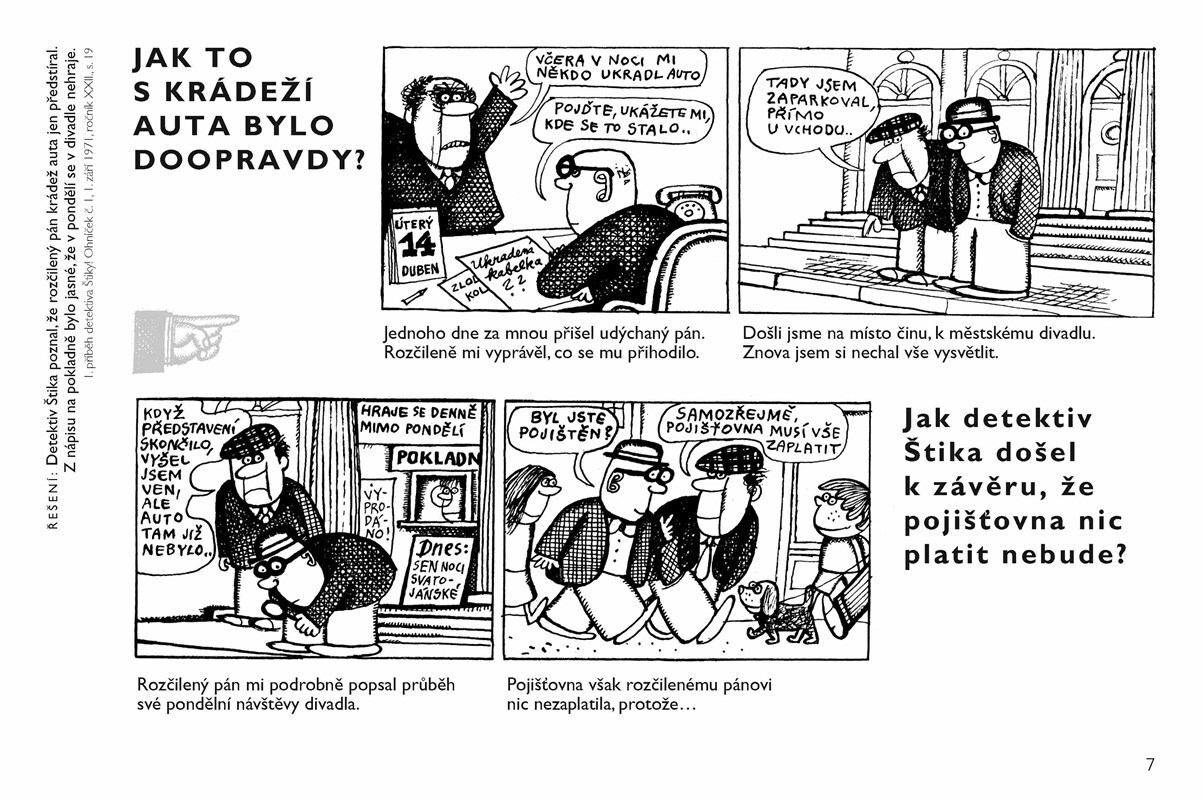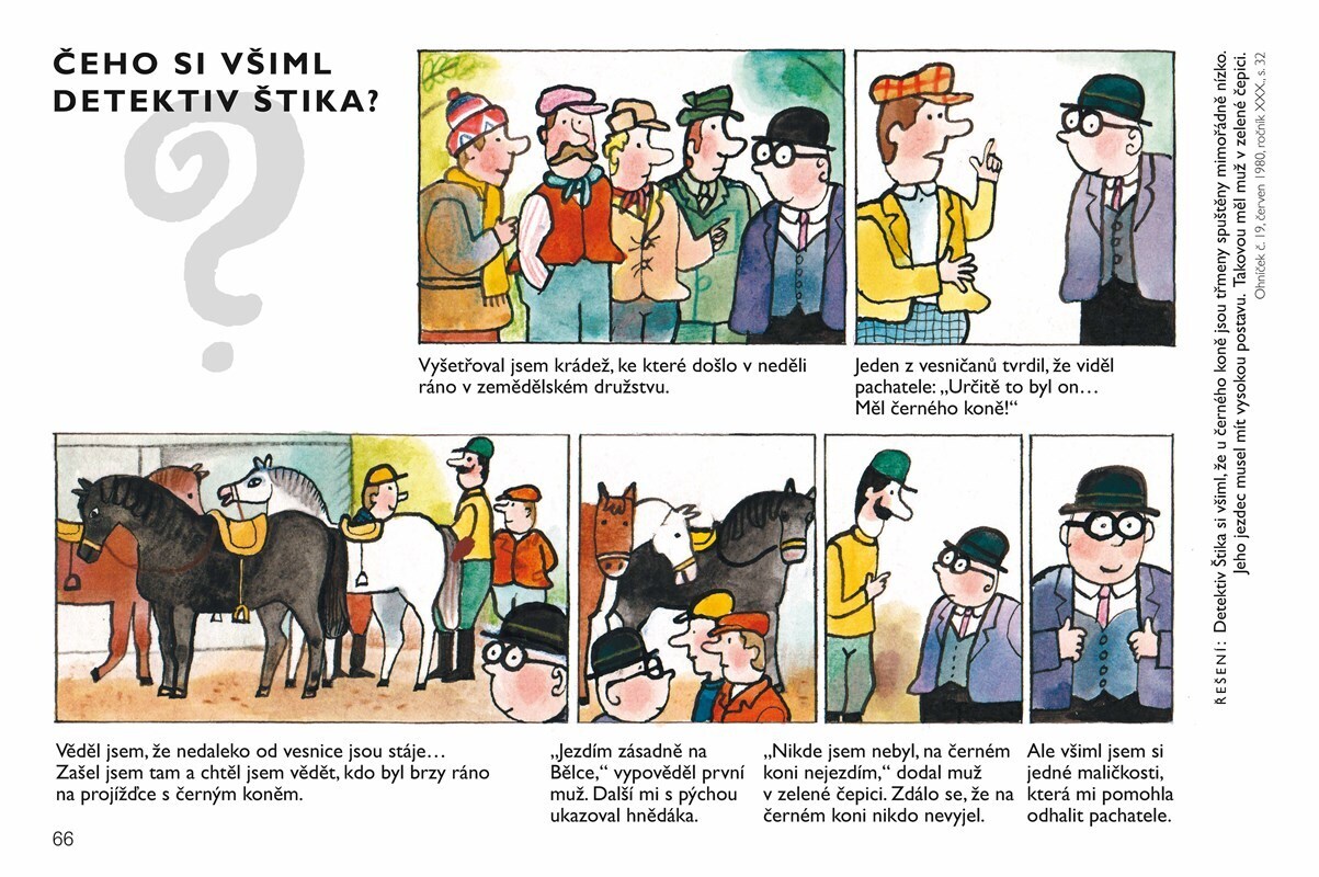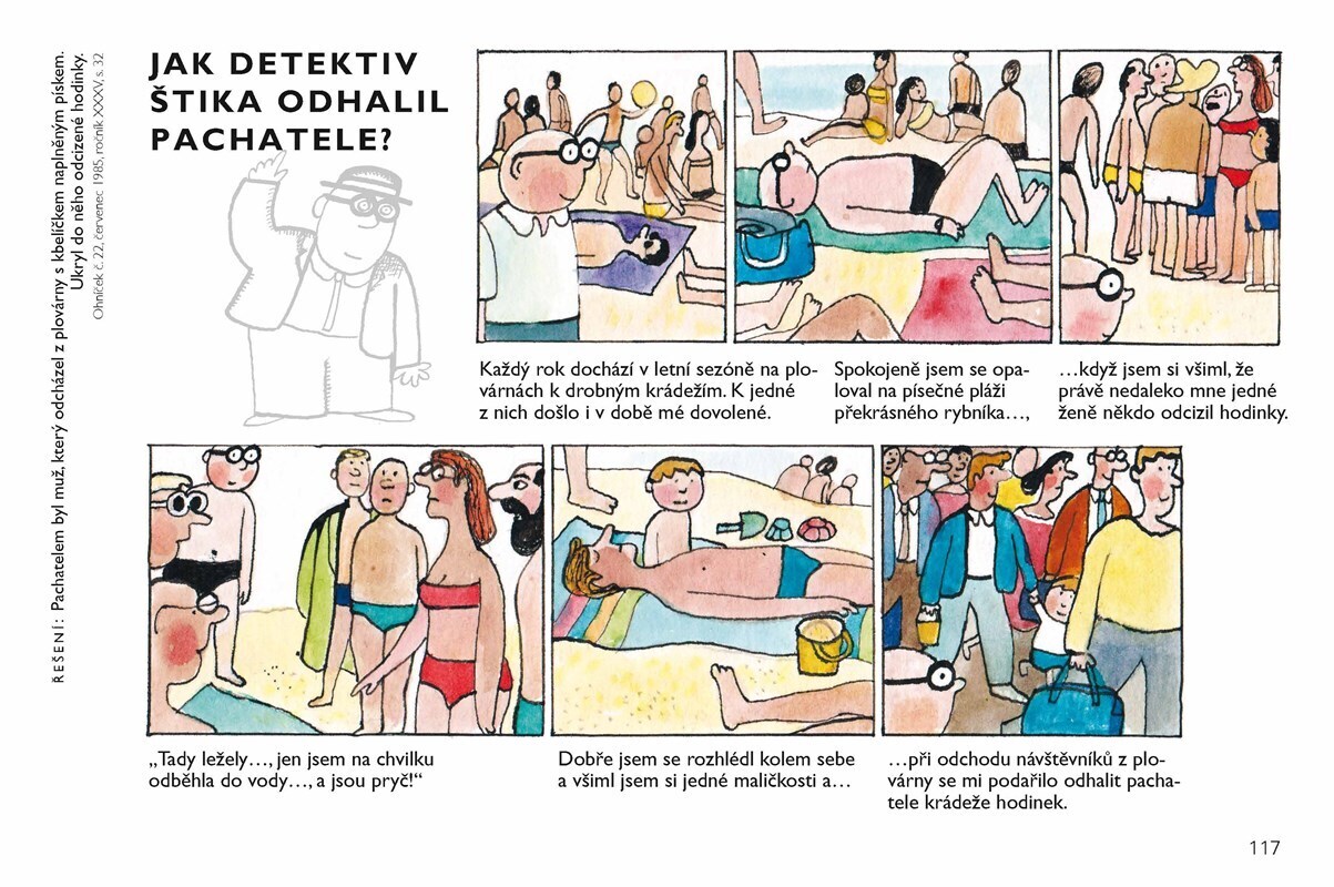 Pro pamětníky i současné děti! Komiks s hádankou o veselém obtloustlém detektivovi, který řeší zapeklité případy, vytvářel ilustrátor Jiří Kalousek patnáct let pro časopis Ohníček.