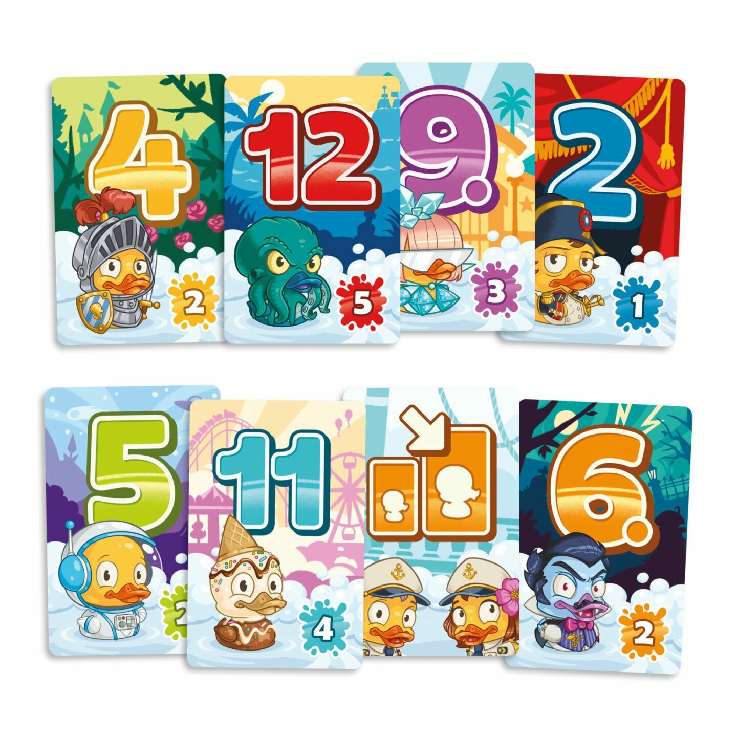 vrchní kartu z dobíracího balíčku. Všichni hráči musí současně přesunout svou kartu s odpovídajícím číslem jedním z těchto způsobů: - Kartu přesuňte vodorovně nebo svisle (ne šikmo) na přímo sousedící kachní kartu. Karta zakryje kartu, na kterou byla přesunuta. - Kartu