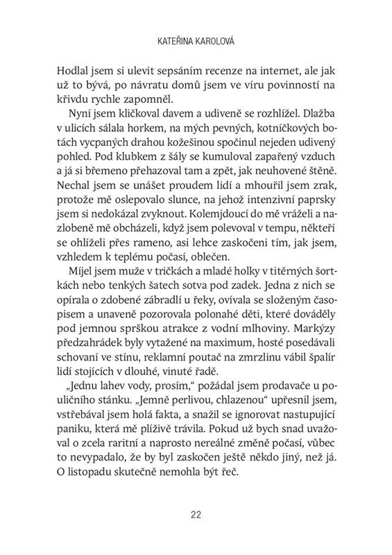 Mladý lékař přijíždí na odbornou konferenci do Karlových Varů, kde ho čeká večerní vystoupení před naplněným sálem. Svou nervozitu se rozhodne zmírnit krátkou procházkou po okolí. Ulice cizího města ho zavedou až k jeho okraji a vyhlášeným lesním vyhlídkám, kde se muž nechá zlákat nenápadnou,...