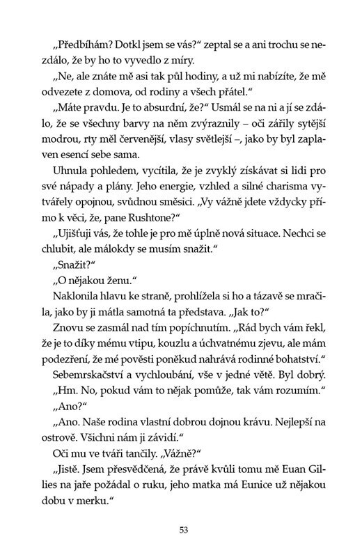 Flora odjakživa věděla, že je předurčena k něčemu víc, než je prostý život na odlehlém skotském souostroví St. Kilda. Když padne do oka bohatému dobrodruhu Jamesovi, zdá se, že má před sebou zářnou budoucnost. Jenže zatímco se ostrované chystají na vysídlení na pevninu, Flořin sen se bortí. Aby...
