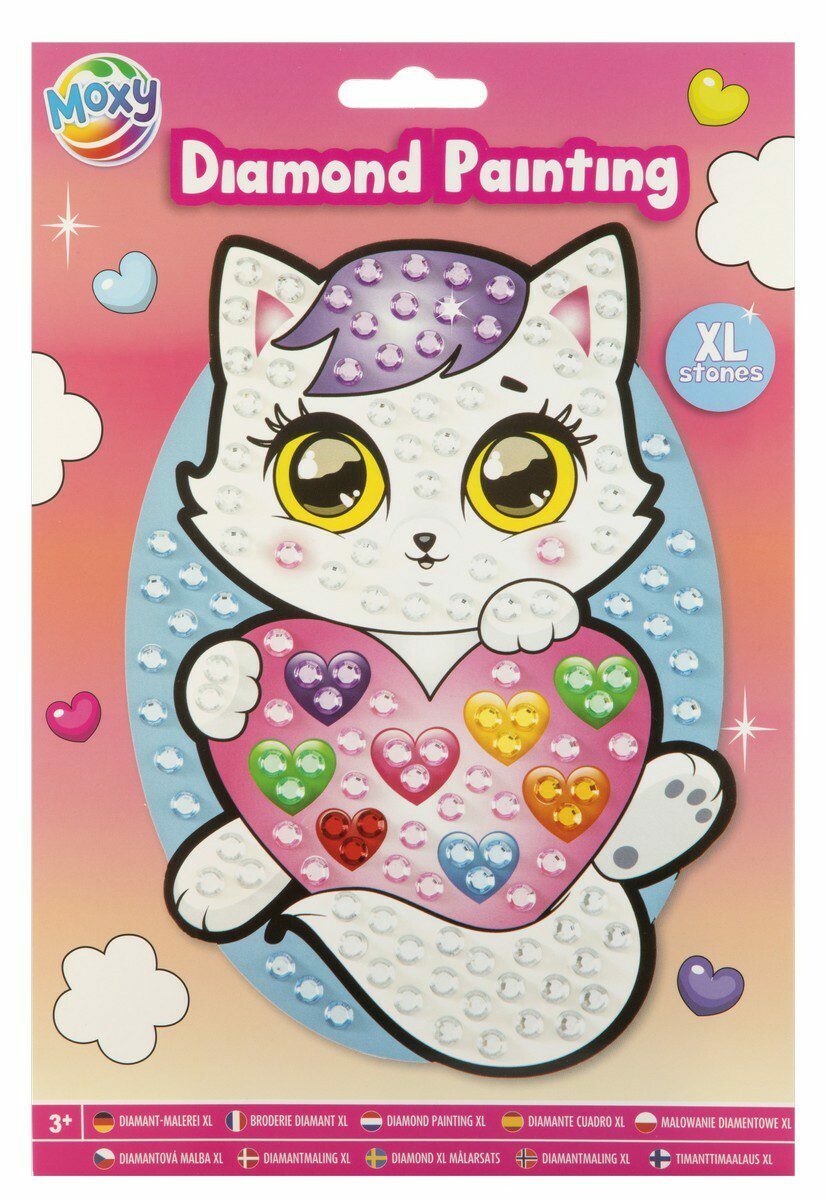 Kreativní set diamantové malování velikosti A5 obsahuje velké XL kameny/drahokamy, předlohu/obrázek, vosk k nalepení kamínků, pero k manipulaci s diamanty a lepení a tácek pro snazší roztřídění a práci. Na předlohu umísti kameny a vznikne nádherný diamantový obrázek kočičky, který bude zdobit...