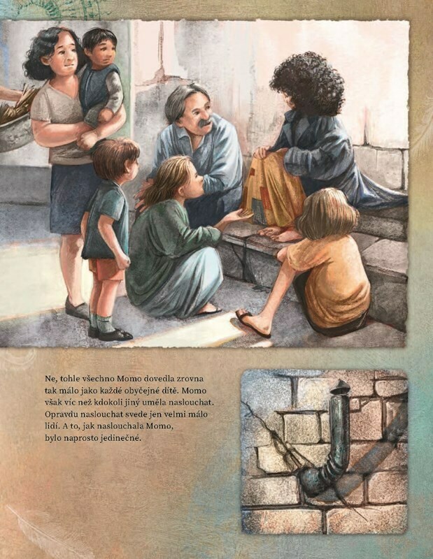 Na okraji velkoměsta žije Momo. Nikdo neví, odkud pochází, ale všichni vědí o jejím zvláštním daru: Momo umí velmi zvláštním způsobem naslouchat. Naslouchá lidem ve městě, dětem, dokonce i zvířatům a větru ve stromech. Když Momo naslouchá svému kamarádovi Gigimu, najednou vymýšlí ty...
