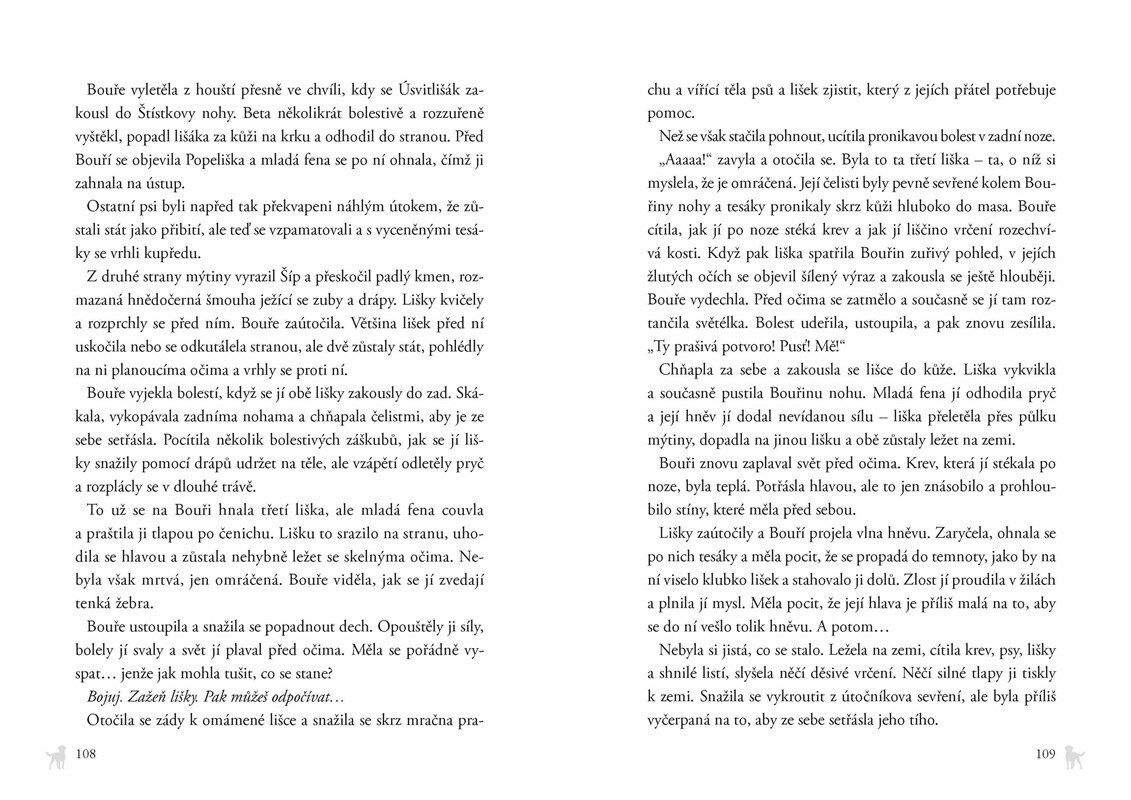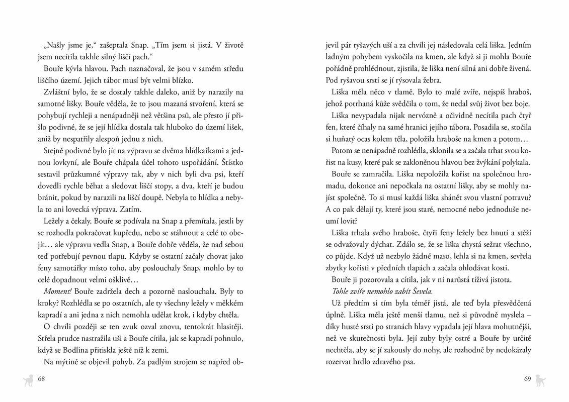 Život v divoké smečce ovládá nedůvěra. Ševel byl zabit a fenka Bouře si je jistá, že mu smrtelné rány mohl způsobit pouze jiný pes. Štístko a ostatní členové smečky se zdráhají Bouři uvěřit, ale ona je odhodlaná zjistit pravdu. Žije mezi nimi zrádce?