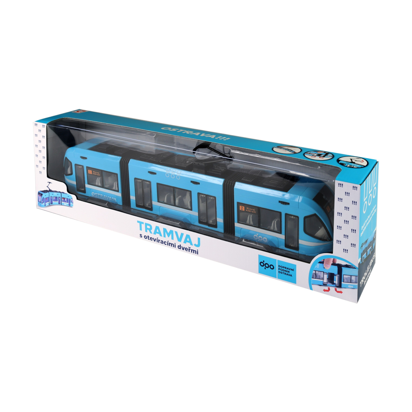 Moderní tramvaj v modré barvě, která jezdí na volný chod je perfektním dárkem pro všechny tramvajové nadšence. Dveře na jedné straně vozu lze manuálně otevřít. Tramvaj je vyrobená z plastu, je dlouhá 47cm a je velmi podobná tramvaji, která jezdí ulicemi v Ostravě. Tato hračka byla vyrobena ve...