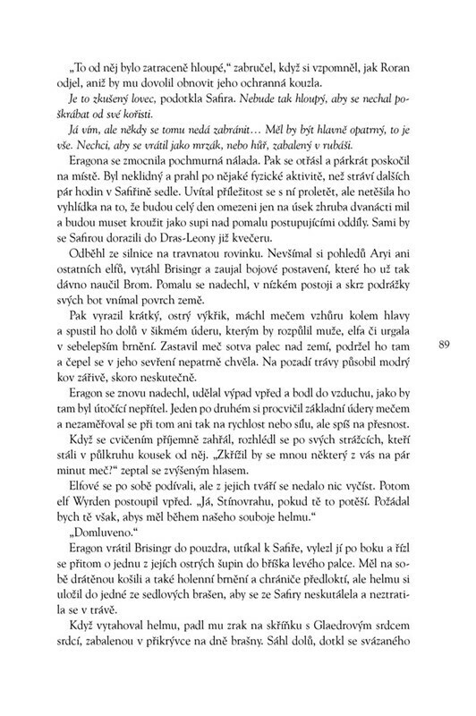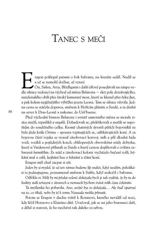 Není tomu tak dávno, co byl Dračí jezdec Eragon obyčejným chudým farmářským chlapcem a jeho dračice Safira pouhým modrým kamenem v lese. Nyní právě na nich závisí osud celé civilizace! Dlouhé měsíce výcviku a bojů přinesly mnohá vítězství a naději, ale také srdcervoucí ztrátu. A ta nejtěžší...