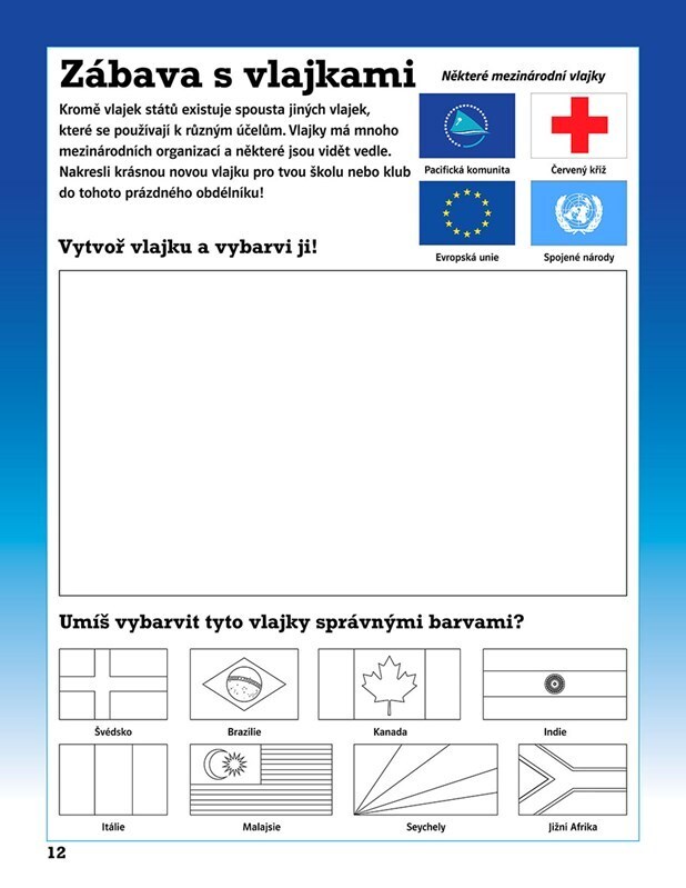 Objev s touto zábavnou knihou samolepek úžasný svět vlajek. Kniha je uspořádaná podle světadílů a ukazuje státní vlajky a hlavní města každé nezávislé země na světě. Navíc v ní najdeš i obří plakát s mapou světa!