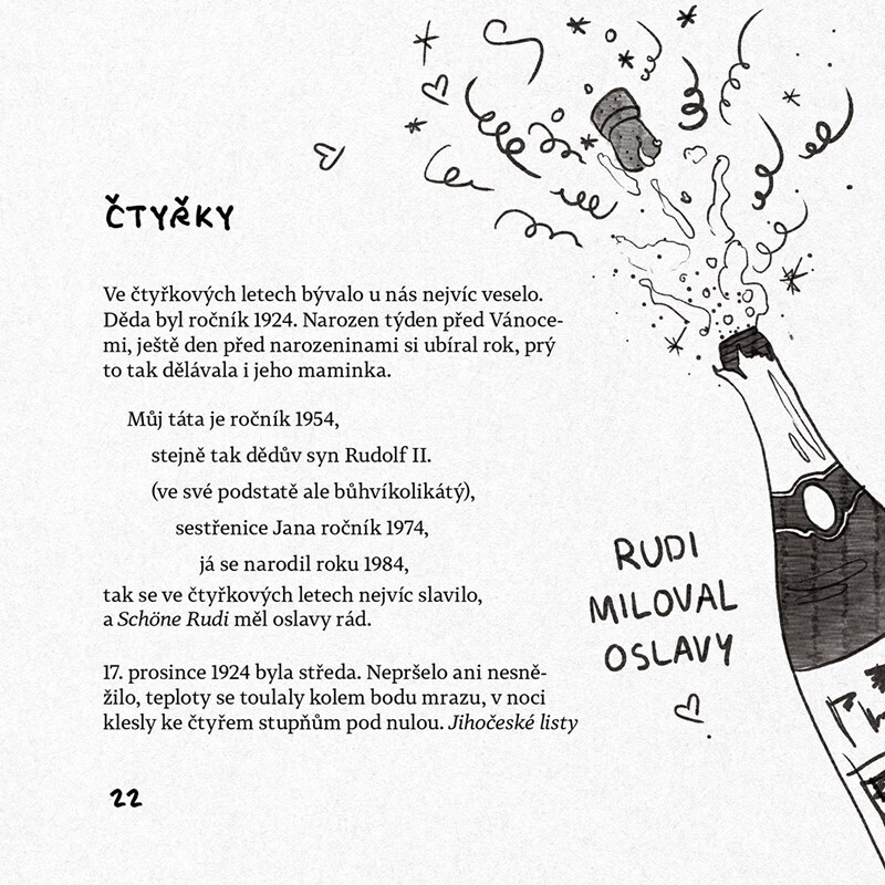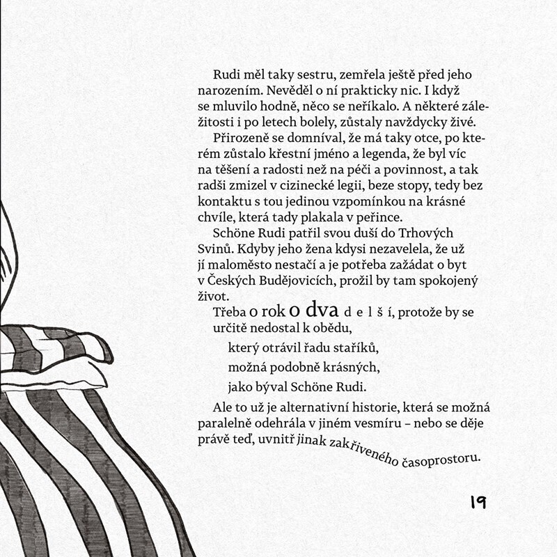 Jan Štifter oživuje vzpomínky na svého dědečka Rudolfa, zvaného „krásný Rudi“ – muže, jehož život byl prosycen šarmem, nadhledem a vášní. V jeho příběhu se probouzí svět venkovských Trhových Svinů i rušnějších Českých Budějovic. Štifter se pomocí tradovaných historek, archivních stop i vlastní...