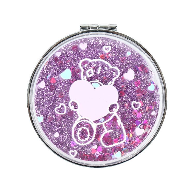 Kosmetické zrcátko s motivy medvídka Me to You v pouzdru s tekutými třpytkami. Průměr: 8 cm