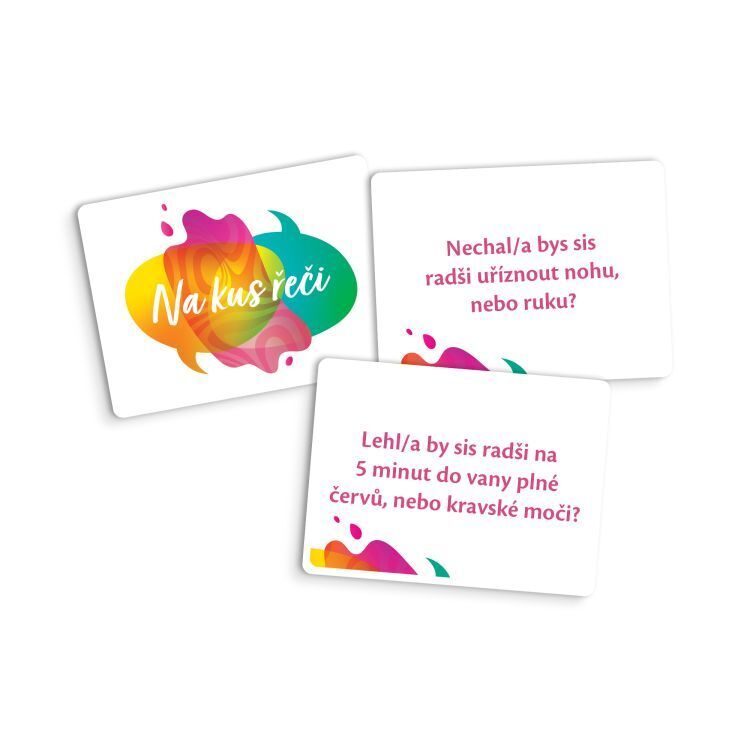 Na kus řeči jsou sady konverzačních karet, jejichž účelem je pomoci rozproudit či obohatit konverzaci o zajímavá témata, k nimž se třeba často obtížně hledají cesty. Hra obsahuje: 89 karet s otázkami, 10 prázdných karet pro vlastní otázky a návod s tipy.
