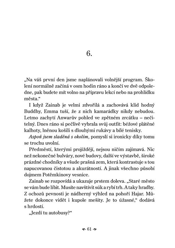 Emma, která pracuje jako masérka v jednom z bretaňských center thalassoterapie, přijme nabídku vyškolit personál luxusního wellness centra v Ománu. Exotická země ji zcela okouzlí, stejně jako šéf resortu, syn vlivného ministra. Neskutečně přitažlivý muž však za svým okouzlujícím úsměvem skrývá...