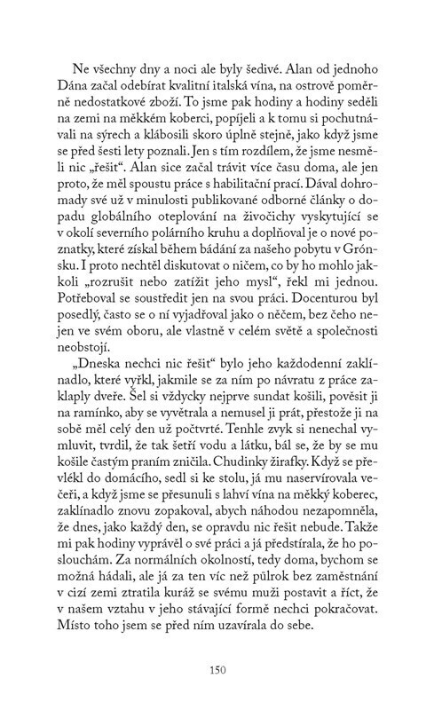 Co se stane, když se žena kvůli svému muži přestěhuje do Grónska a on jí k narozeninám věnuje plavbu s partou zbohatlíků na severní pól? A co když si vědec z Ruska vypůjčí zdánlivě nepotřebnou knihu, kterou už nikdy nevrátí? A co teprve, když jediný muž, který o vás na ostrově uprostřed ledu a...