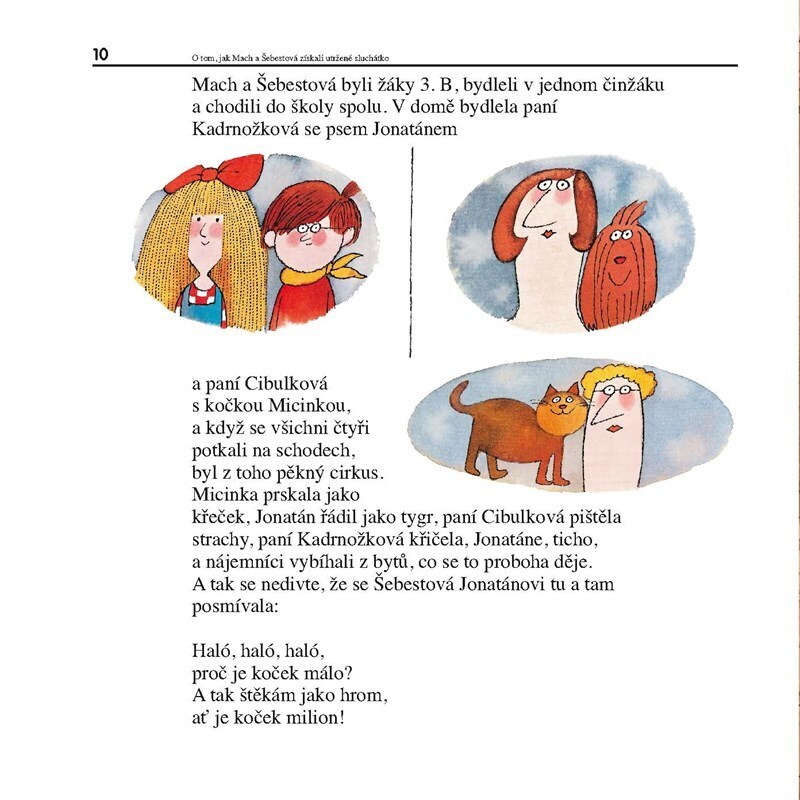 Tentokrát žáci 3. B Mach a Šebestová v sedmi humorných kapitolách pomocí kouzelného sluchátka promění psa Jonatána v kluka a vezmou ho na školní výlet, vypraví se do doby ledové a přivedou odtud člověka neandrtálského jako názornou školní pomůcku, vyléčí spolužákovi Kropáčkovi angínu, obohatí...