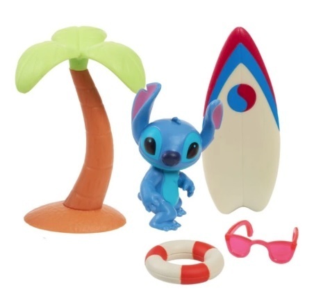 Hang Ten sada figurek Lilo a Stitche se skládá ze 6 dílků. Obsahuje figurky Stitche v plážovém oblečení, surfovací prkno a další 3 doplňky na hraní. Dětem se bude líbit oblékat Stitche do slunečních brýlí nebo do hula sukně. Vhodné pro děti od 3 let
