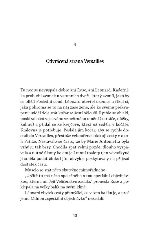 Francouzská královna Marie Antoinetta se zdánlivě zajímá jen o šaty a paruky, je to však pouze záminka, aby utajila výdaje na svá detektivní dobrodružství. Jako prostředníci jí opět slouží inovátor paruk Léonard Autier a krejčová Rose Bertinová. Když Marie Antoinetta vymyslí plán, jak získat...