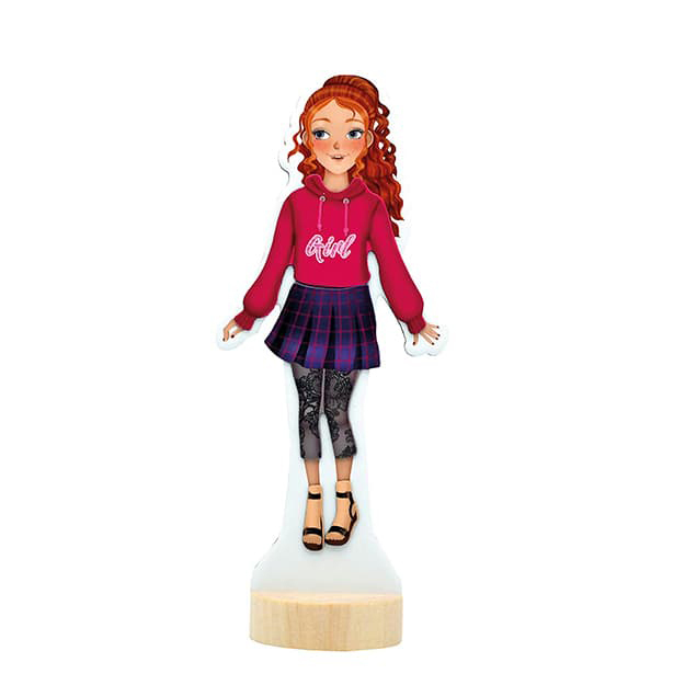 Balení obsahuje oblékací panenku, 30 magnetických částí (oblečení, boty, doplňky) a dřevěný podstavec, díky nimž lze vytvořit nespočet módních kreací.