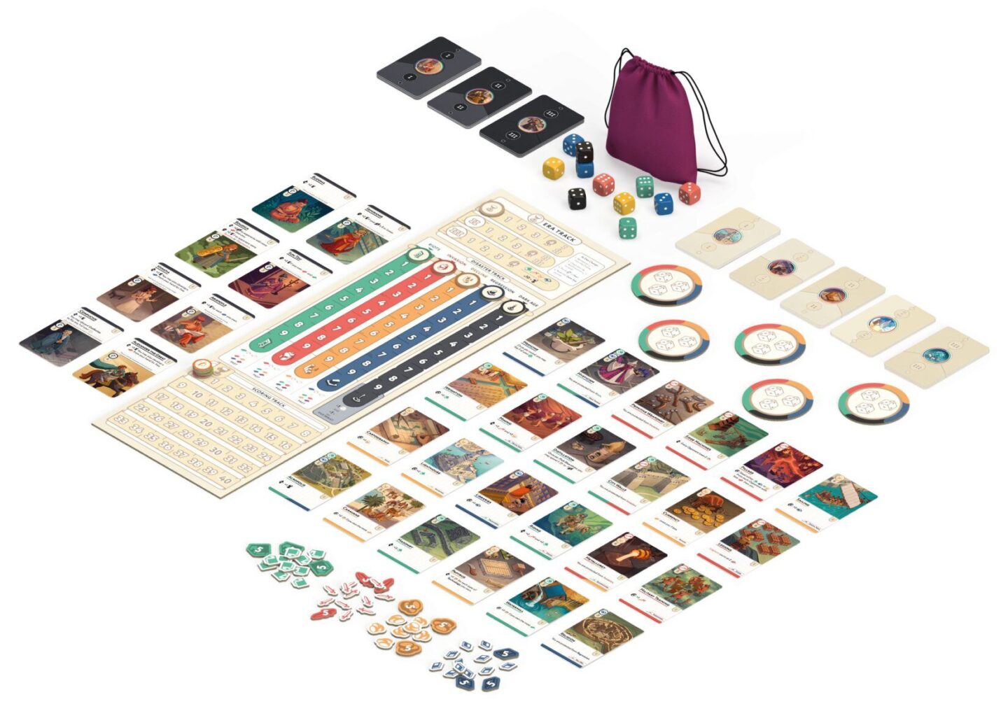 zapříčinit pád civilizací do temného věku. Pouze ten nejmoudřejší vládce bude schopen vystoupat na vrchol a vybudovat nejúspěšnější civilizaci! Nova Era se hraje na 3 éry. Každá éra se skládá ze 3 kol, po kterých následuje fáze bodování. - Vyberte si kostky. . . ale